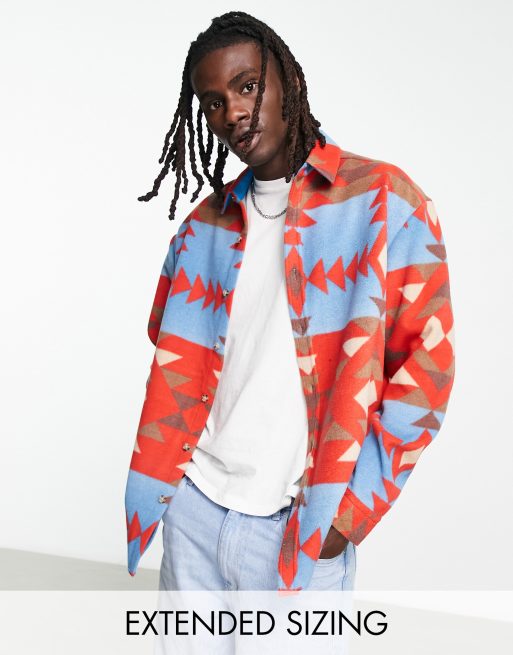 ASOS DESIGN 90s oversized fleece shirt in aztec print