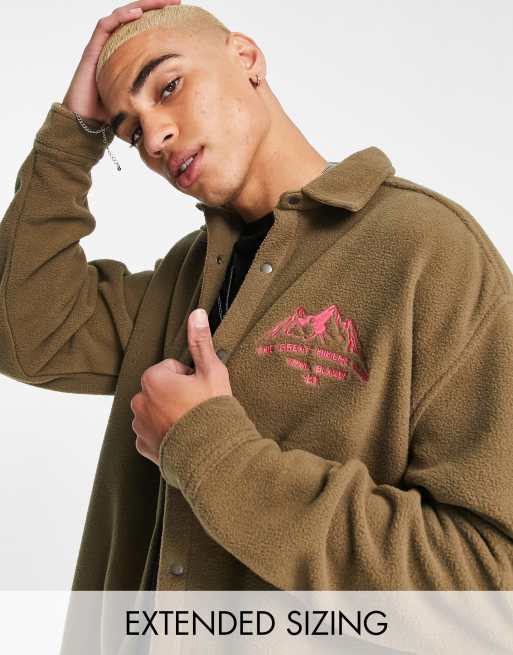 ASOS DESIGN 90s oversized fleece shirt with chest embroidery