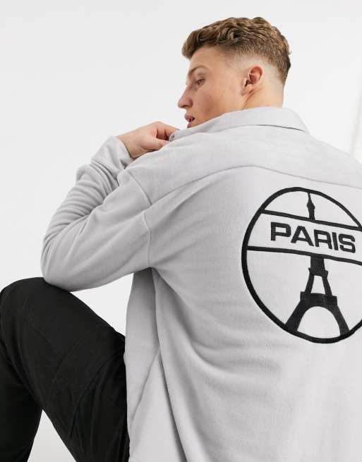 ASOS DESIGN 90s oversized grey fleece shirt with back embroidery