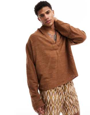 ASOS DESIGN 90s oversized overhead shirt in brown