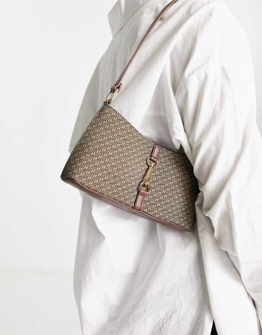 ASOS DESIGN 90s shoulder bag in monogram print with hardware clip