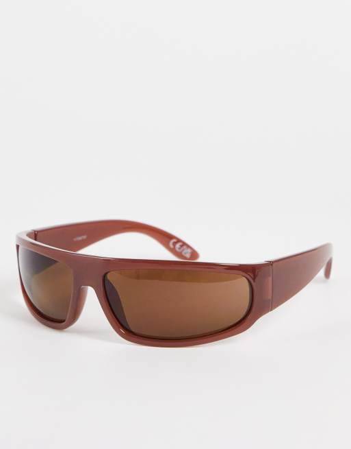 ASOS DESIGN 90s wrap visor sunglasses in tonal brown