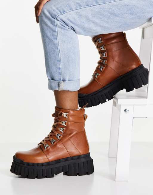 ASOS DESIGN Aaron premium leather chunky hikers in tan
