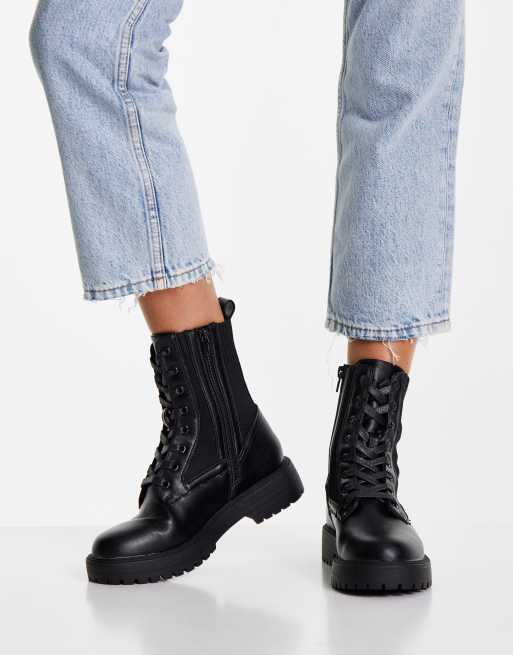 ASOS DESIGN Aim knitted lace up boots in black