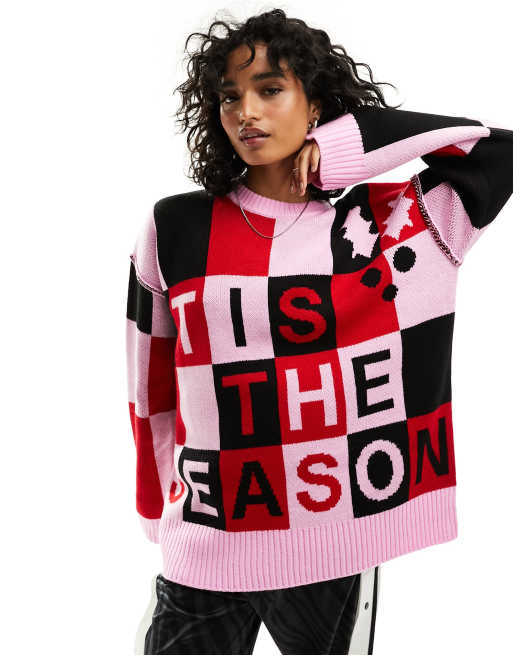 ASOS DESIGN all over slogan Christmas jumper