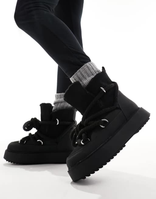 ASOS DESIGN Alpine shearling lace up snow boots in black