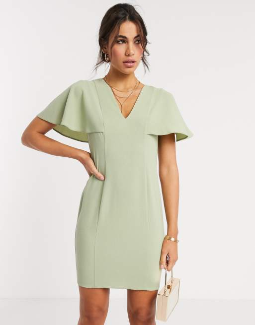 ASOS DESIGN angel sleeve v neck mini shift dress in sage green