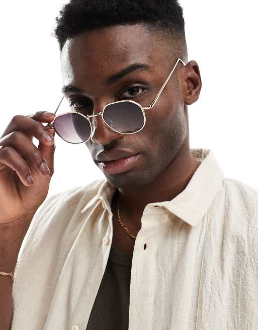 ASOS DESIGN angled round metal sunglasses with smoke gradient lens in gold