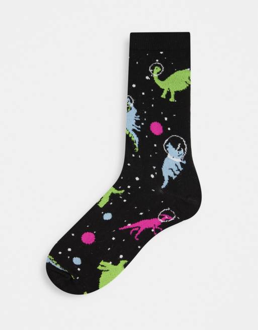 ASOS DESIGN ankle sock with dinosaurs in space design