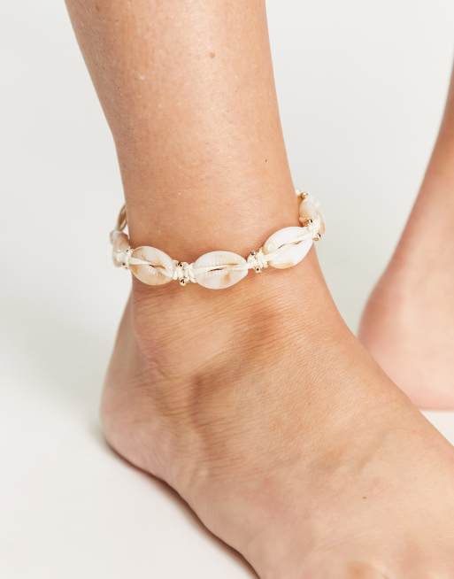 ASOS DESIGN anklet with faux shell and gold bead design