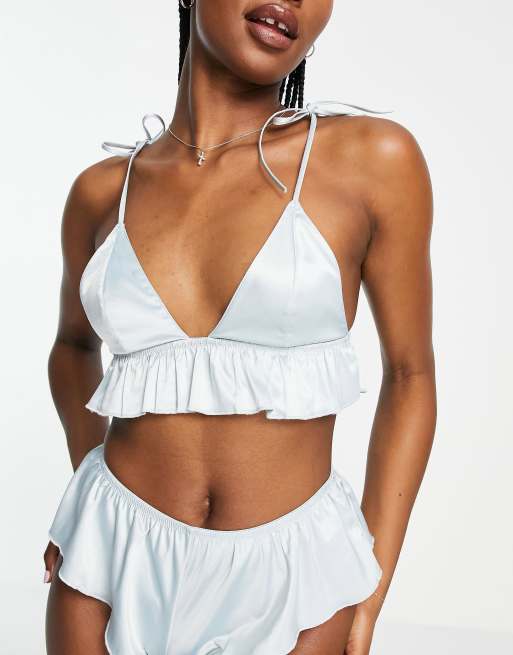 ASOS DESIGN Anni satin frill bralette in blue