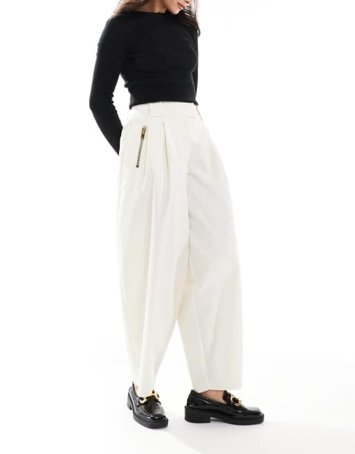 ASOS DESIGN arch leg zip detail trousers in off white