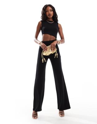 ASOS DESIGN asymmetric cut out wide leg jumpsuit in black