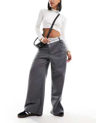 ASOS DESIGN asymmetric fold over waistband trouser in grey