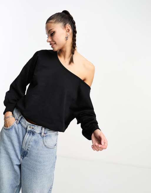 ASOS DESIGN asymmetric oversized sweatshirt in black