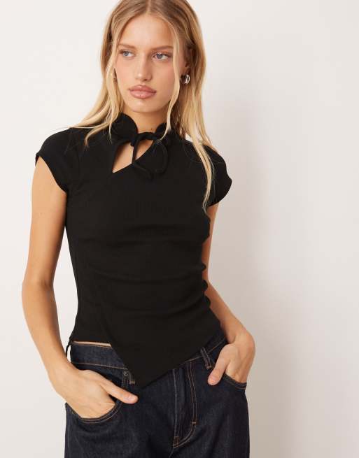 ASOS DESIGN asymmetric rouleau tie top in black