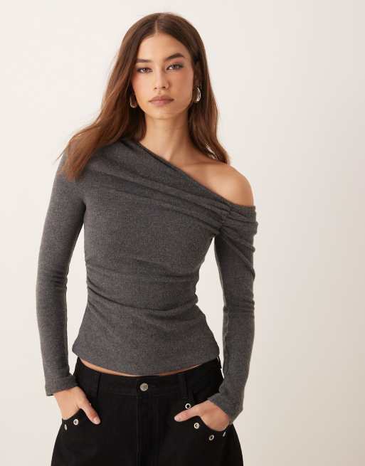 ASOS DESIGN asymmetric ruched supersoft top in grey