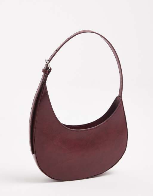 ASOS DESIGN asymmetric scoop shoulder bag with buckle detail in washed burgundy