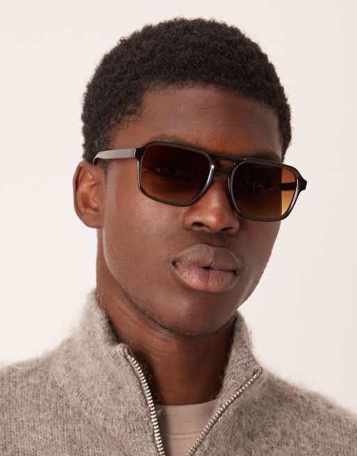 ASOS DESIGN aviator sunglasses with brown ombre lens and brown frame