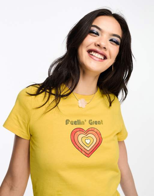 ASOS DESIGN baby tee with 70s feeling great graphic in yellow