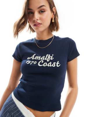 ASOS DESIGN baby tee with amalfi coast embroidered graphic in navy
