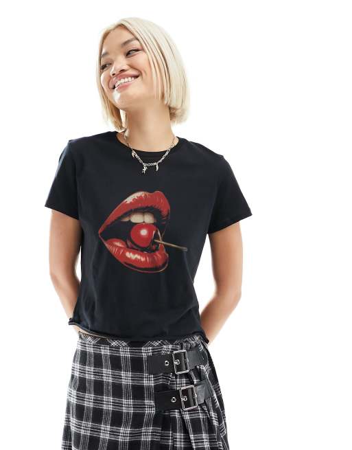 ASOS DESIGN baby tee with cherry lips graphic in black
