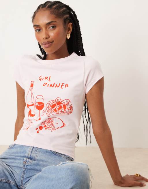 ASOS DESIGN baby tee with girl dinner graphic in pink