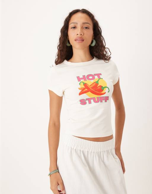 ASOS DESIGN baby tee with hot stuff chilli graphic in cream