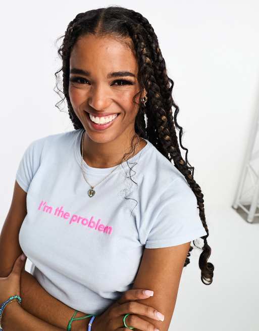 ASOS DESIGN baby tee with I'm the problem graphic in blue