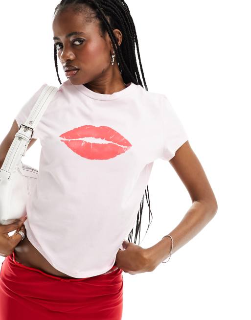 ASOS DESIGN baby tee with red kiss graphic in pink