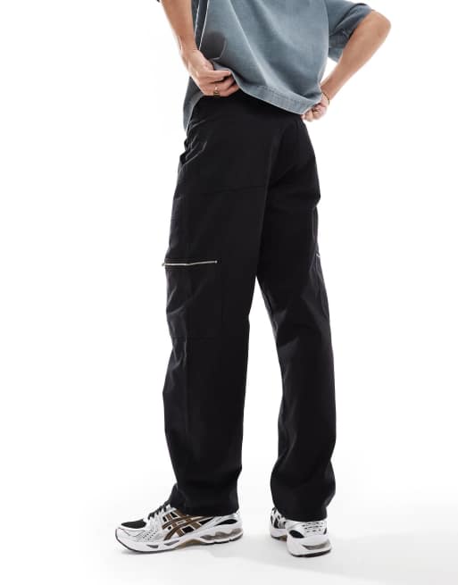 ASOS DESIGN baggy carpenter trousers with zip details in washed black