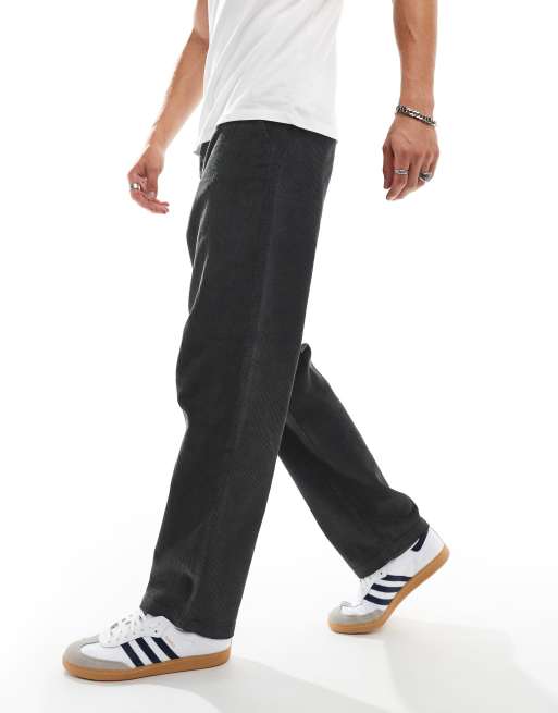 ASOS DESIGN baggy fit cord trouser in charcoal
