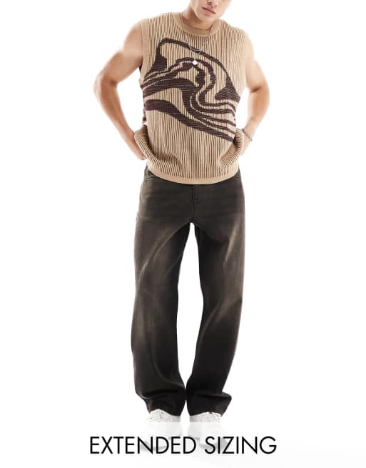 ASOS DESIGN baggy jeans in washed black with brown tint