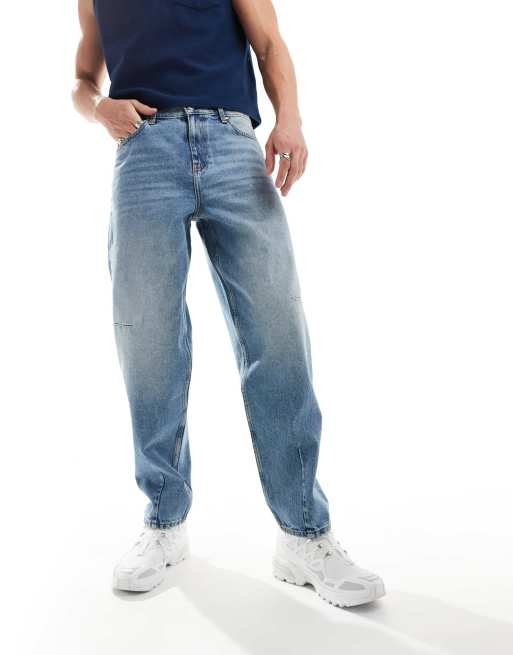 ASOS DESIGN baggy jeans with darts in light wash blue