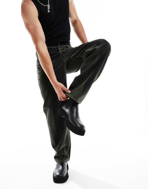 ASOS DESIGN baggy jeans with double waistband in Y2k black wash