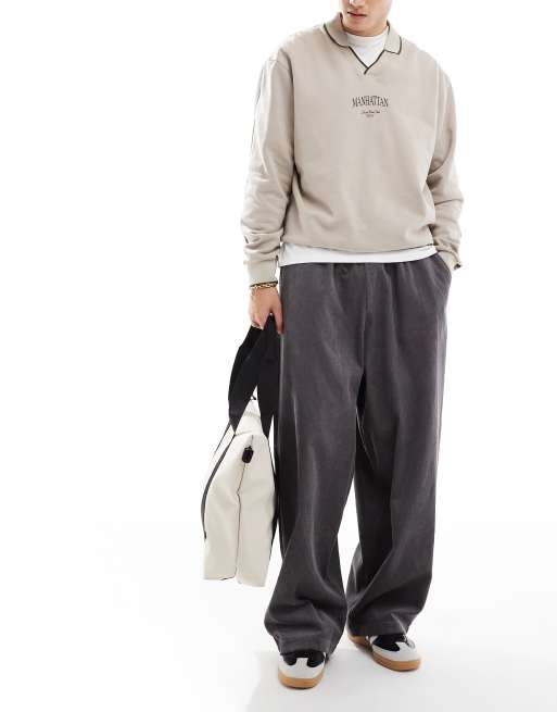 ASOS DESIGN baggy parachute cord trouser in charcoal grey