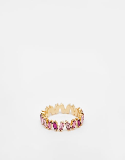 ASOS DESIGN baguette ring with tonal pink stones in gold tone