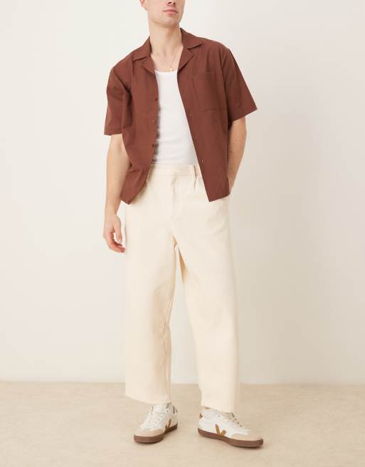 ASOS DESIGN balloon fit trouser with beltloop detail in ecru