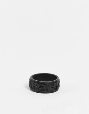 ASOS DESIGN band ring with greek emboss in matte black