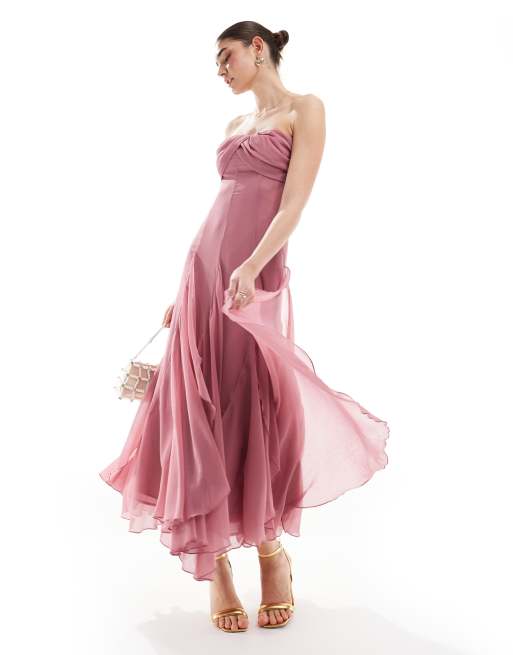 ASOS DESIGN bandeau overlayer split hem maxi dress in dusky pink