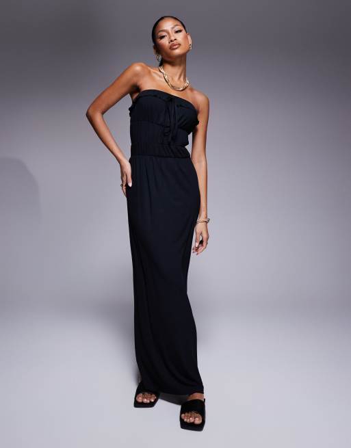 ASOS DESIGN bandeau ruffle tiered waist maxi dress in black
