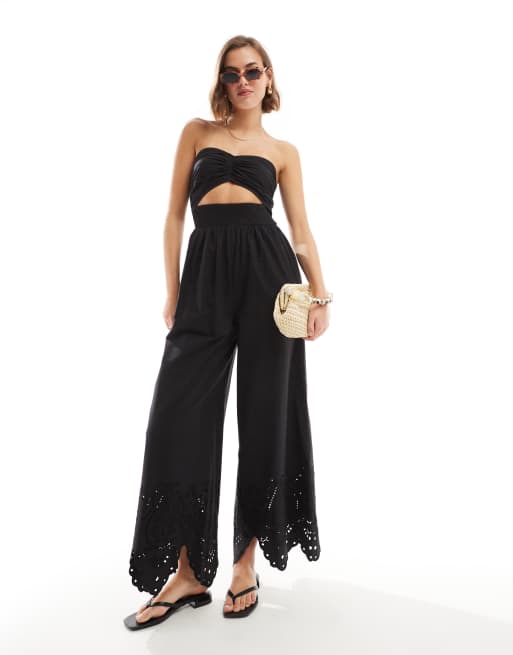 ASOS DESIGN bandeau twist front embroidered cutout jumpsuit in black