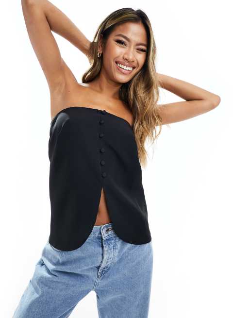 ASOS DESIGN bandeau waistcoat with buttons in black