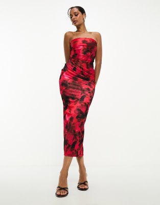 ASOS DESIGN bandeau with satin drape midi dress in print