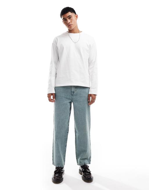 ASOS DESIGN barrel fit jeans in mid stone wash