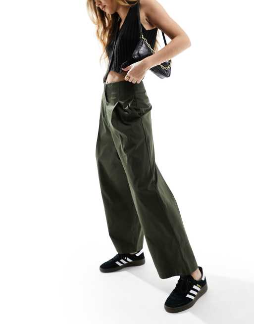 ASOS DESIGN barrel trousers in structured twill in khaki