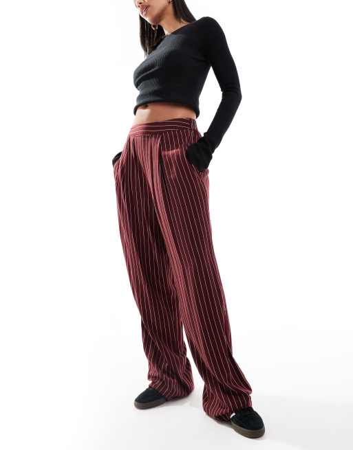 ASOS DESIGN basic pull on trouser in burgundy stripe
