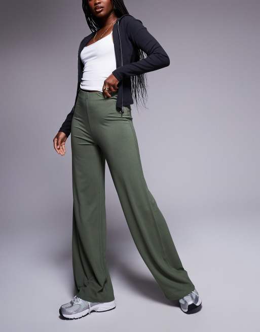ASOS DESIGN basic wide leg jersey trouser in khaki