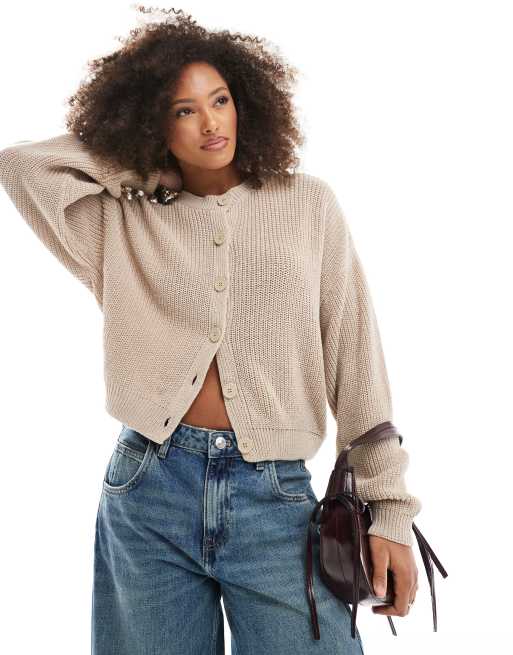 ASOS DESIGN batwing knitted cardigan in cream taupe