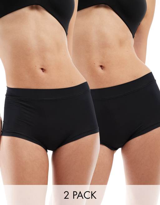 ASOS DESIGN Bella 2 pack super soft high waist shortie in black